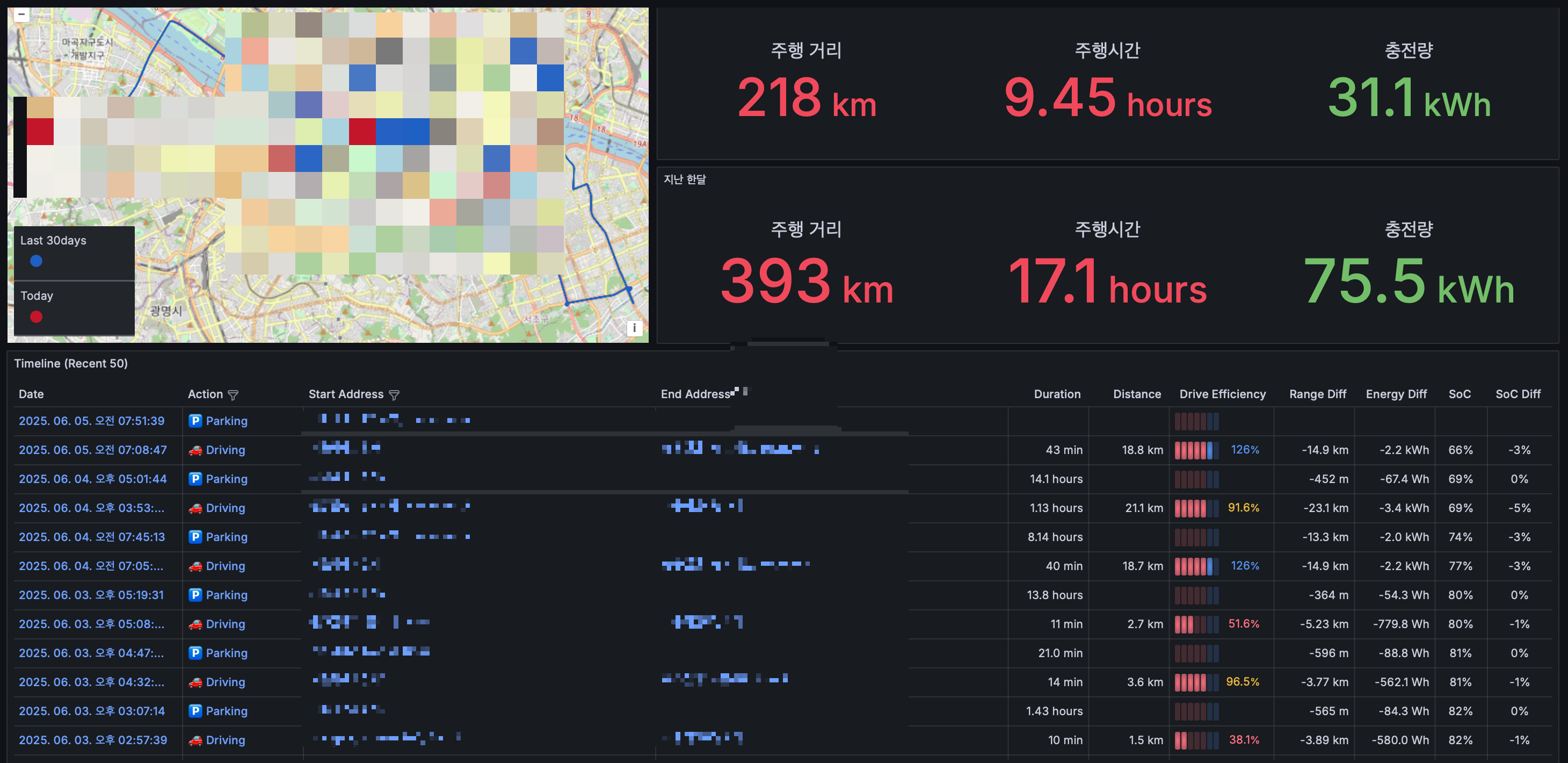 예시로 간단하게 지난 한달간 주행거리, 주행시간, 충전량을 나타내는 판낼을 만드는 법을 소개하겠다.