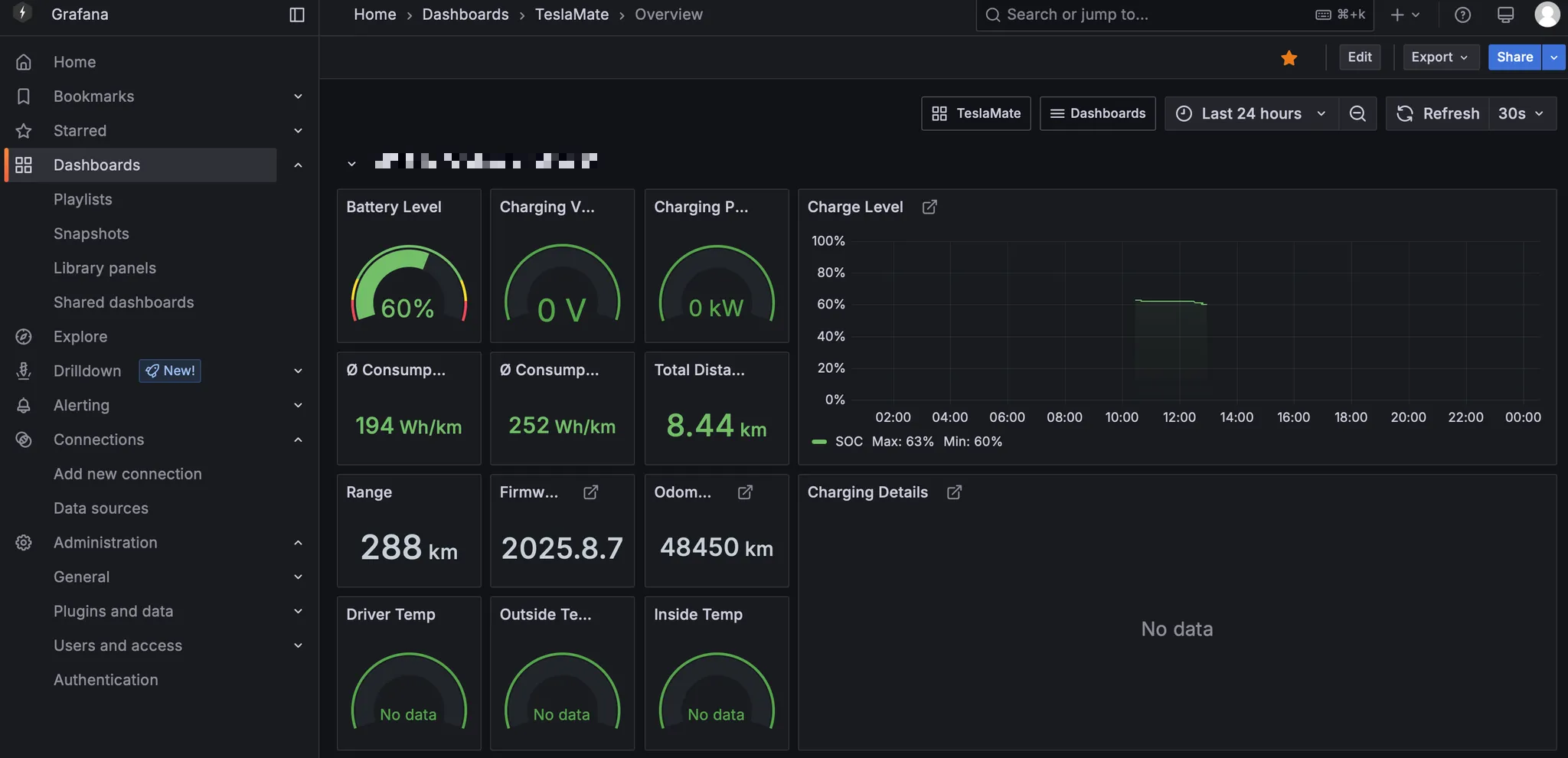 설치후 접속은 http://teslamate_설치ip:4000 으로 테슬라메이트 접속, http://teslamate_설치ip:3000 으로 Grafana 접속을 할 수 있다.